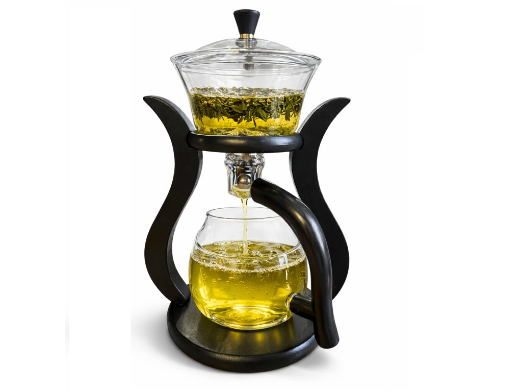 5️⃣ Čaj začne plynule protékat do spodní konvice.