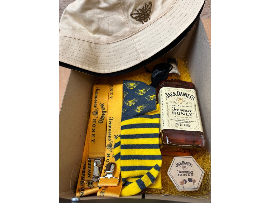 Základem boxu je láhev Jack Daniel’s Honey 0,7 l, jemná Tennessee whiskey s přírodním medem, která se skvěle pije samotná, na ledu i v jednoduchých míchaných drincích. Set doplňují ponožky Jack Daniel’s a plátěný klobouk Jack Daniel’s Honey, které podtrhují letní a uvolněný styl značky.