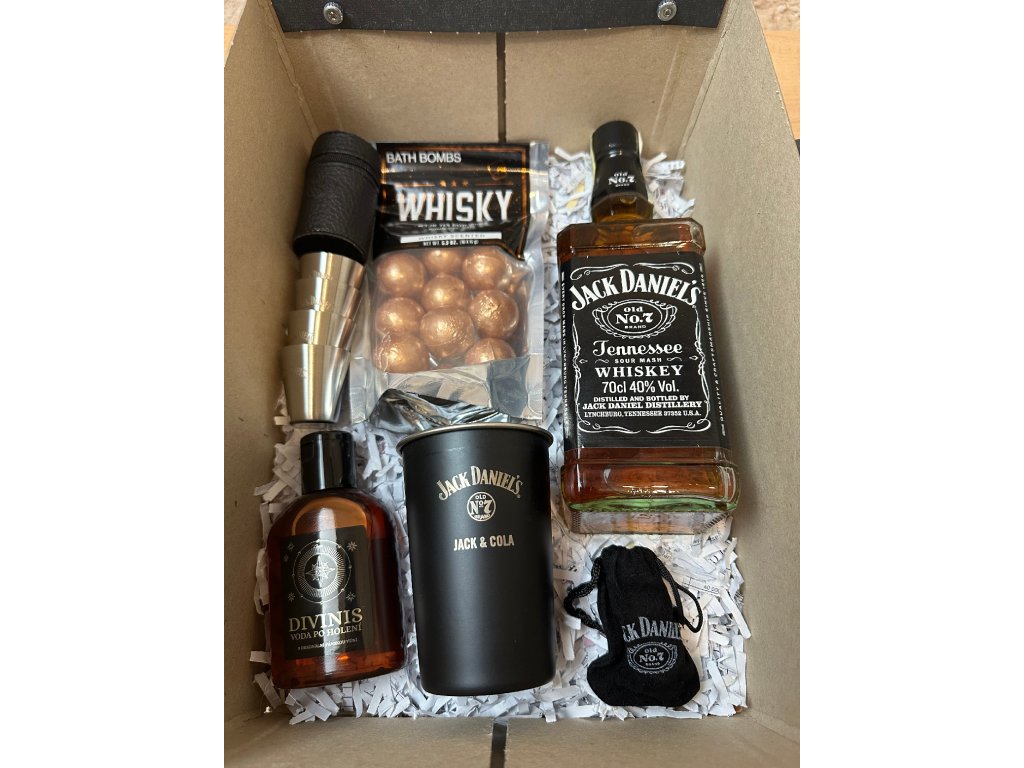 Základem balení je láhev Jack Daniel’s 0,7 l, ikonická Tennessee whiskey s jemným, vyváženým profilem. Pro chvíle skutečné pohody obsahuje box také whisky bombu do koupele, která promění běžnou koupel v relaxační zážitek s nádechem whiskey atmosféry.
