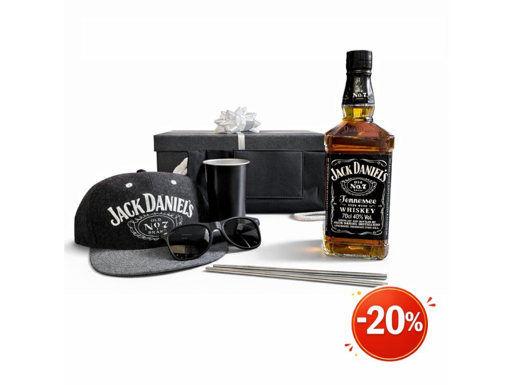 - ✔ ikonická whiskey Jack Daniel’s v kombinaci s merchem