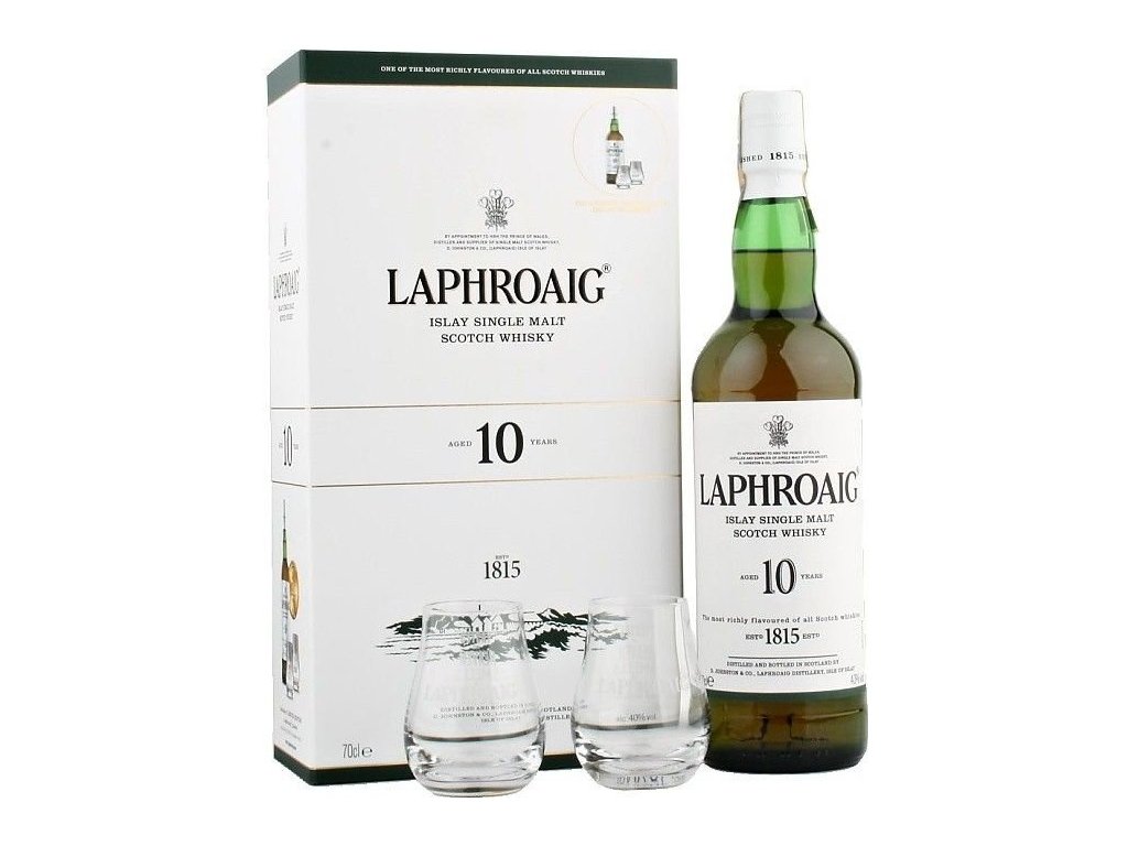 Součástí balení jsou 2 originální degustační skleničky Laphroaig, díky kterým si lze whisky vychutnat naplno.